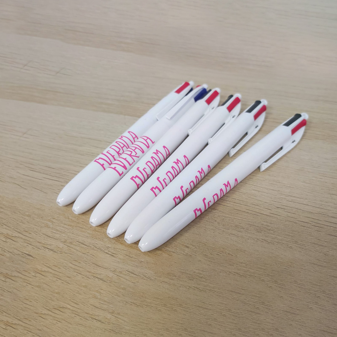 Personalització en superfícies corbes (bolígrafs, tasses) i planes (bosses, pòsters), amb tintes UV i base d’aigua.