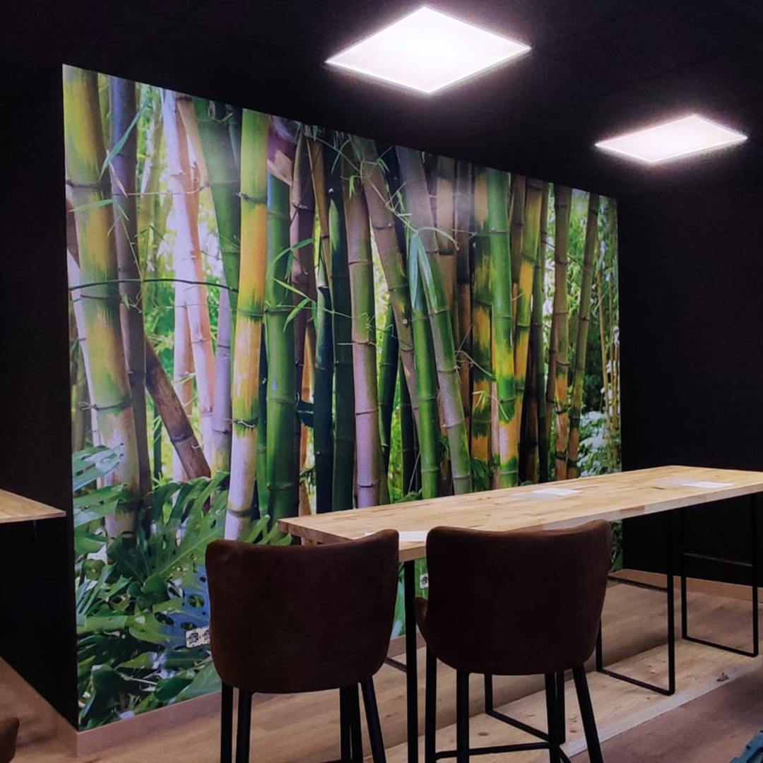 Vinils, parets temàtiques i senyalètica per a espais comercials i oficines.